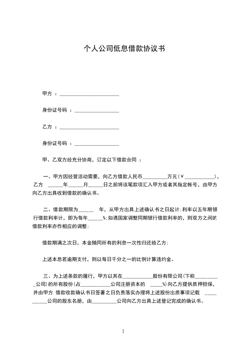贷款人:_________________(下简称乙方)身份证号:_________________