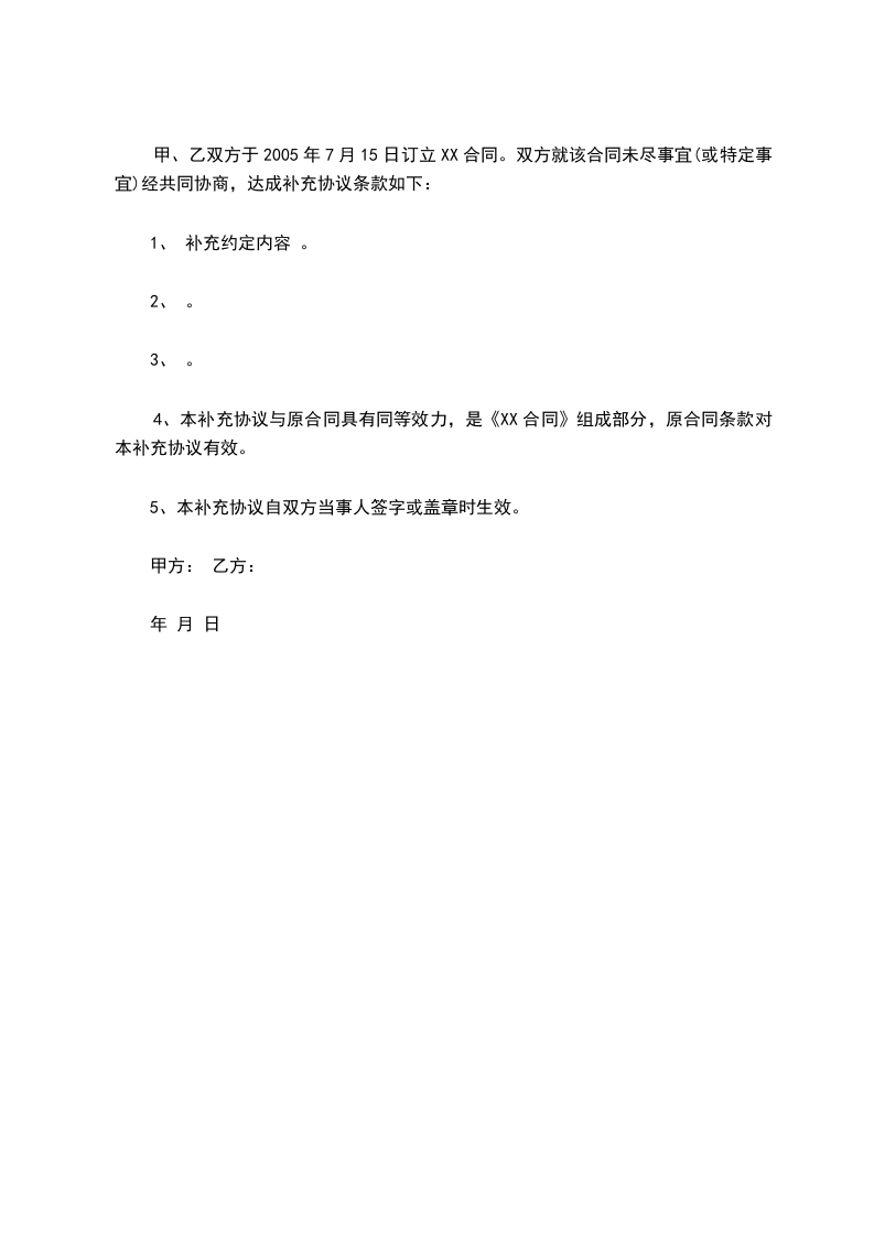 4、本补充合同经买卖双方代表签字、加盖公章后生效。补充协议有效期自合同生效之日起,至合同双方责任和义务履行完毕之日止。