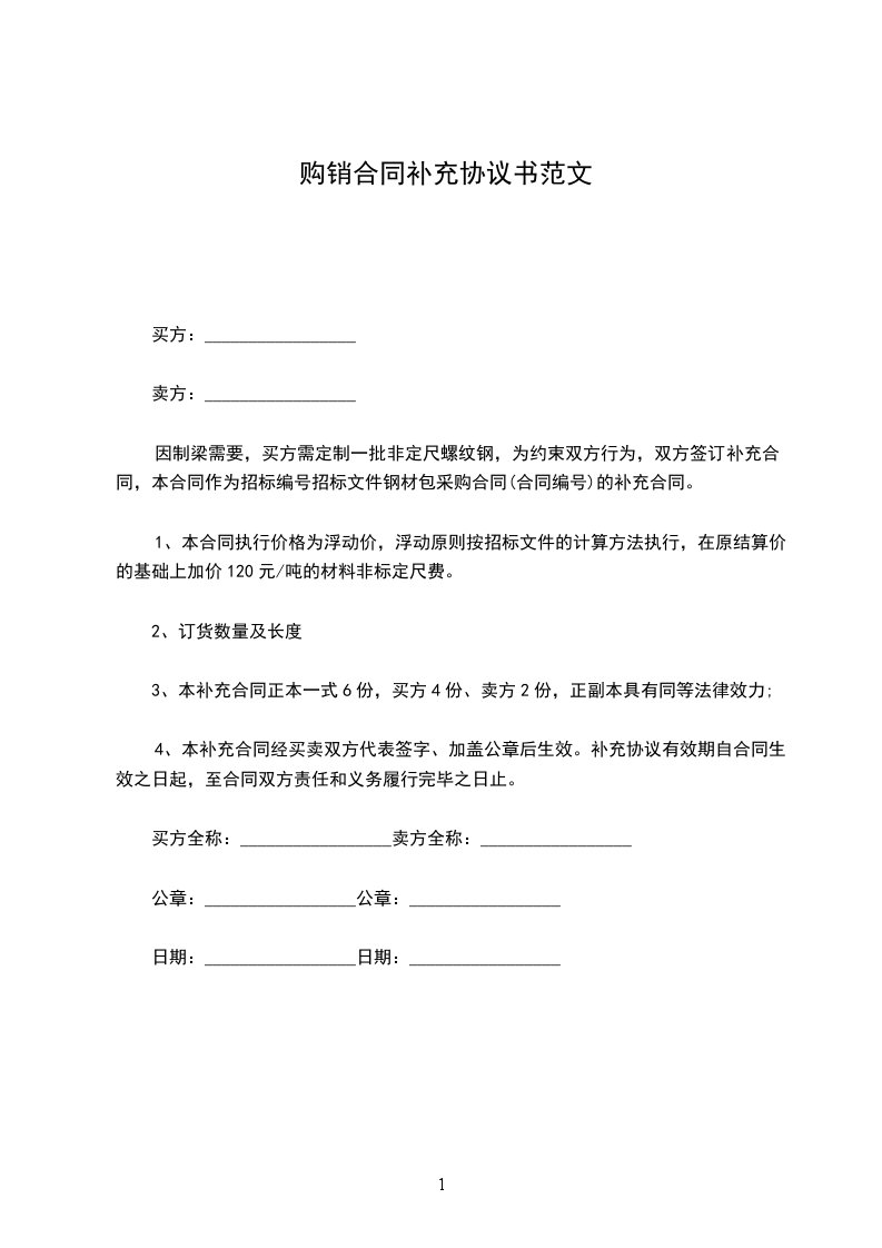 因制梁需要,买方需定制一批非定尺螺纹钢,为约束双方行为,双方签订补充合同,本合同作为招标编号招标文件钢材包采购合同(合同编号)的补充合同。