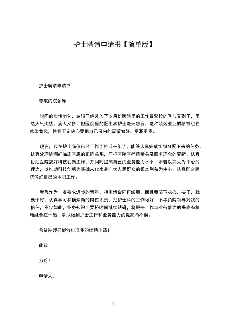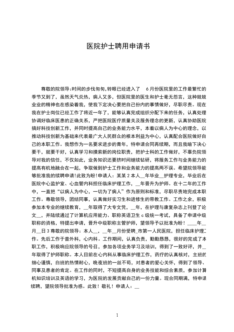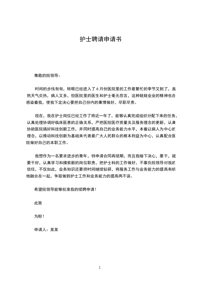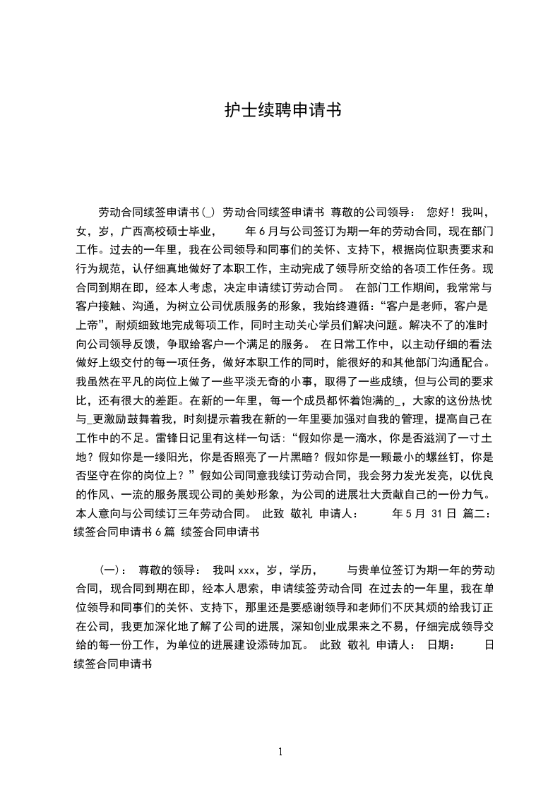 我想作为一名要求进步的青年,特申请合同再续期,而且我暗下决心,要干,就要干好,认真学习和摸索新的岗位职责,把护士科的工作做好,不辜负院领导对我的信任,不仅如此,业务知识还要挤时间继续钻研,将服务工作与业务能力的提高有机地融合在一起,争取做到护士工作和业务能力的提高两不误。