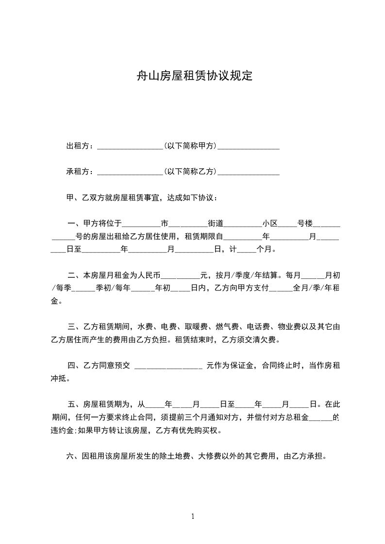 一、甲方将位于__________市__________街道__________小区_____号楼_____________号的房屋出租给乙方居住使用,租赁期限自__________年__________月__________日至__________年__________月__________日,计_____个月。