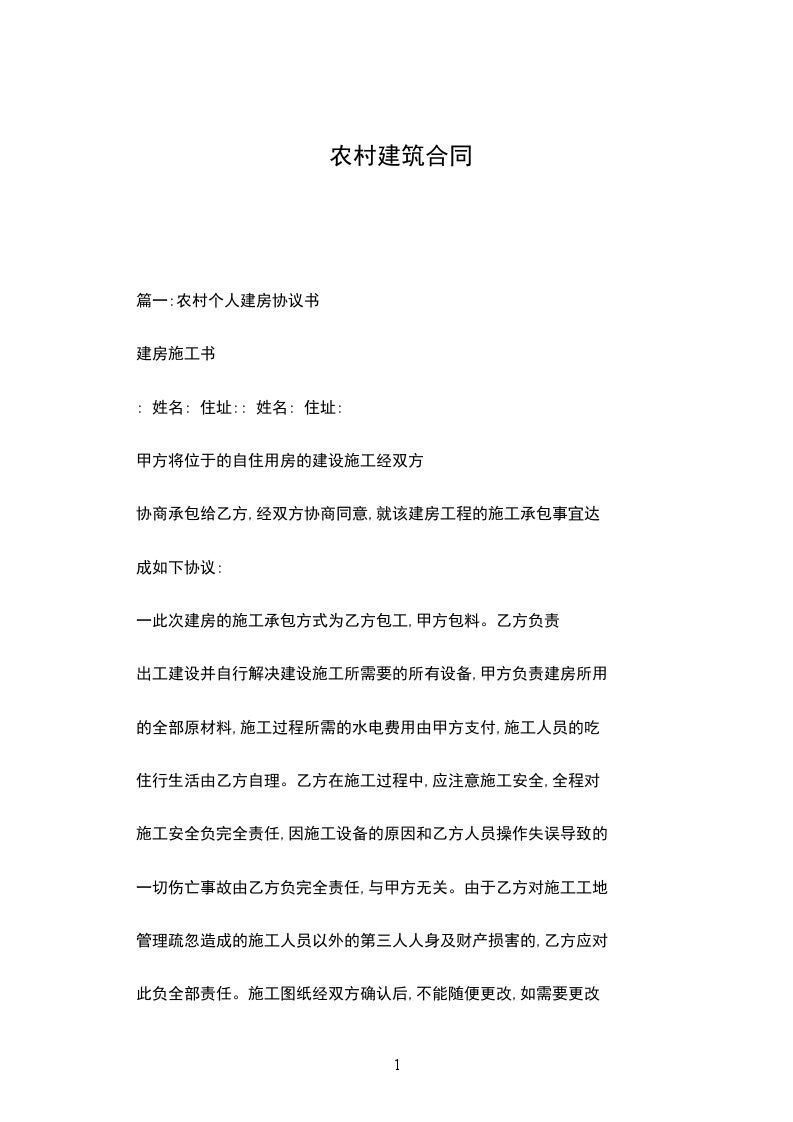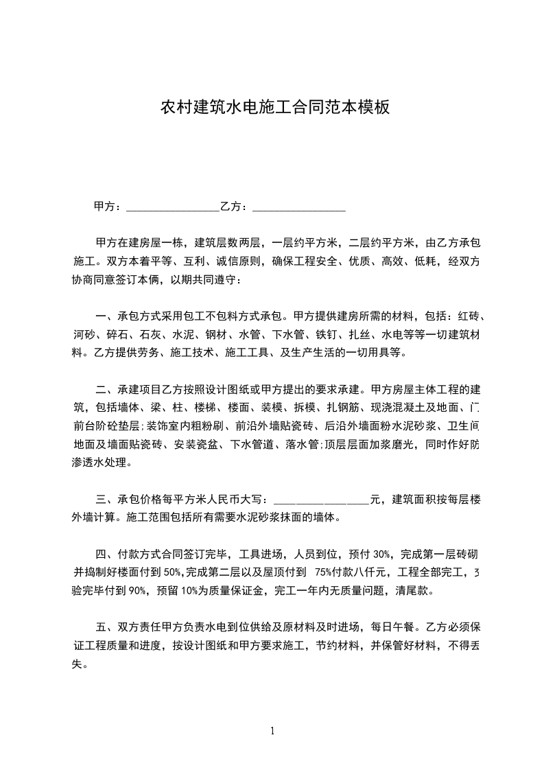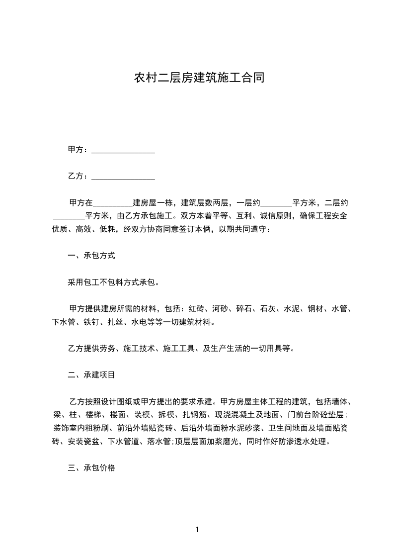 甲方在建房屋一栋,建筑层数两层,一层约平方米,二层约平方米,由乙方承包施工。双方本着平等、互利、诚信原则,确保工程安全、优质、高效、低耗,经双方协商同意签订本俩,以期共同遵守: