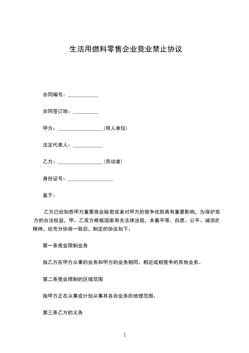 生活用燃料零售企业竞业禁止协议