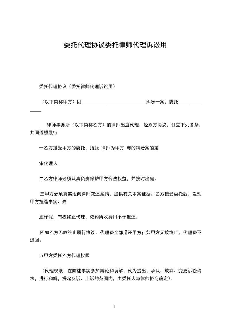 一、乙方接受甲方的委托,指派律师________________、________________为甲方一、二审及执行代理人。
