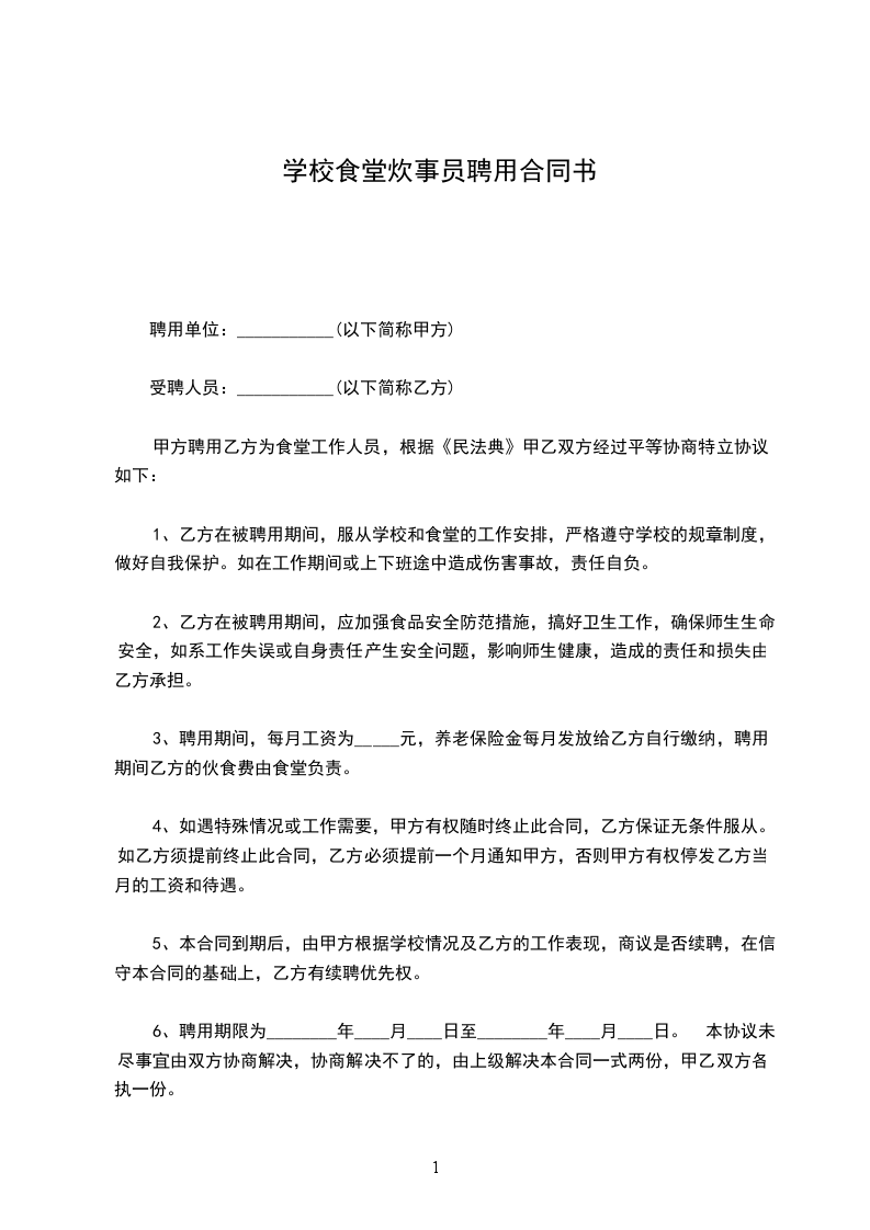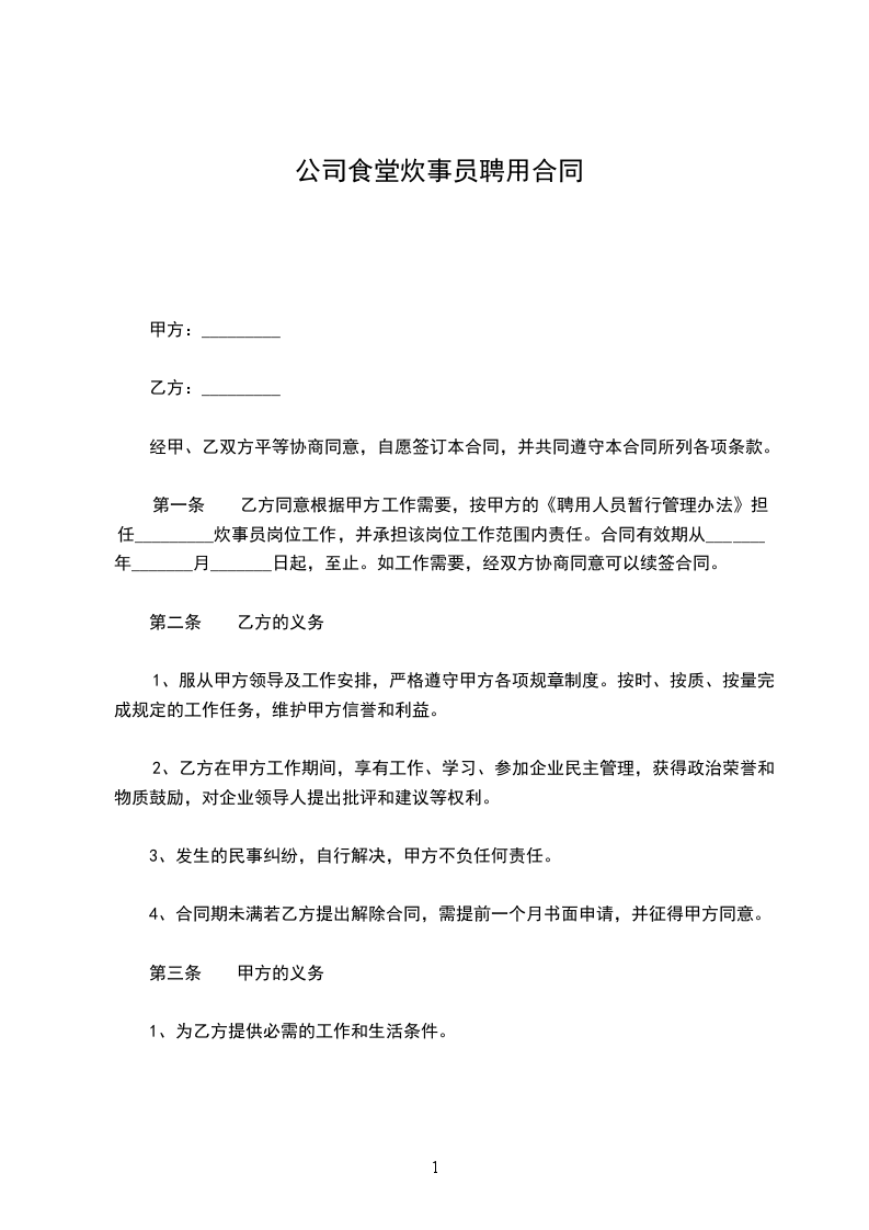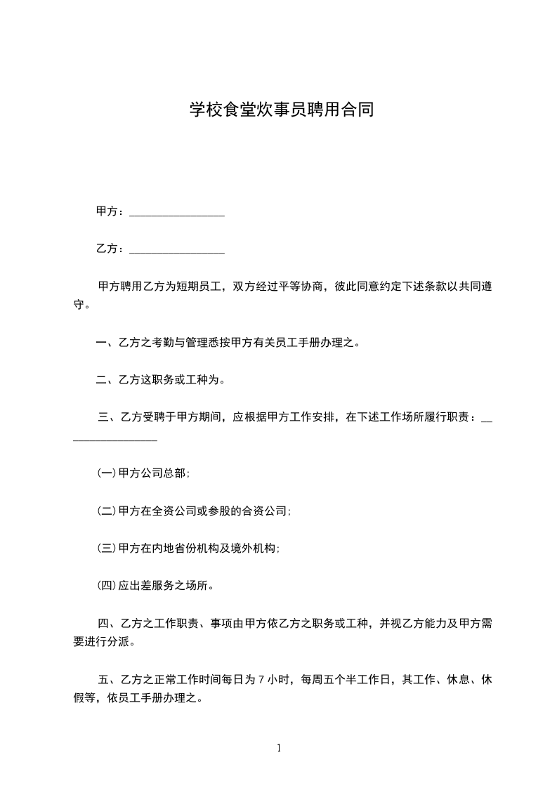 甲方聘用乙方为短期员工,双方经过平等协商,彼此同意约定下述条款以共同遵守。