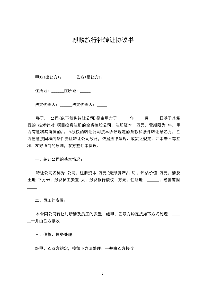 本合同公司转让时所涉及员工的安置,经甲、乙双方约定按如下方式处理:一并由乙方接收