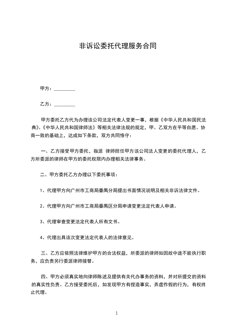 第一条乙方接受甲方委托,指派_____________律师作为甲方的代理人。