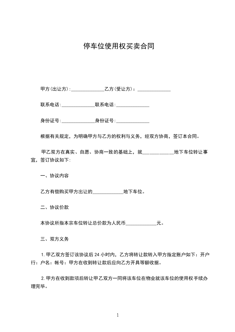 乙方有偿购买甲方出让的_____________地下车位。