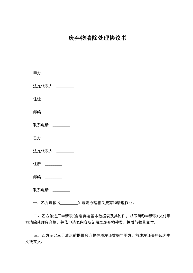 一、乙方遵依《_________》规定办理相关废弃物清理作业。