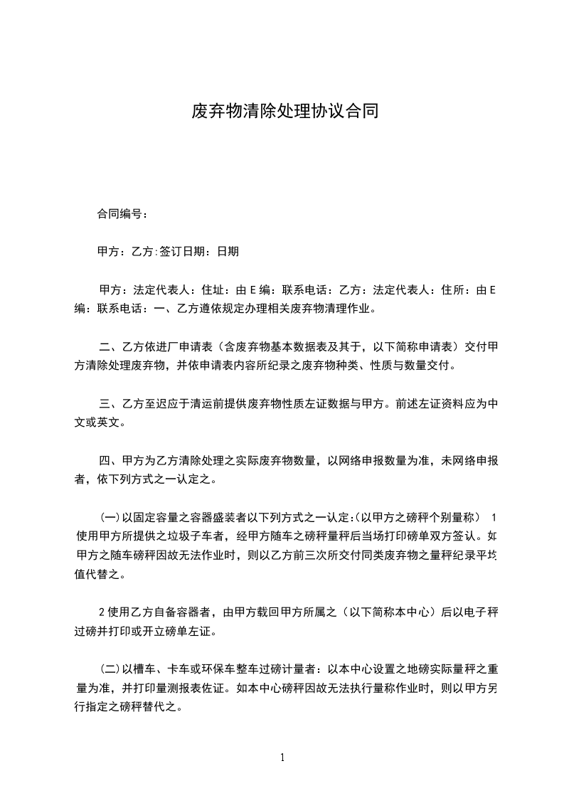 (一)乙方应详实告知甲方拟清除处理之废弃物种类与性质。若因乙方未详实告知,经甲方清除发现者,该批废弃物退还乙方。
