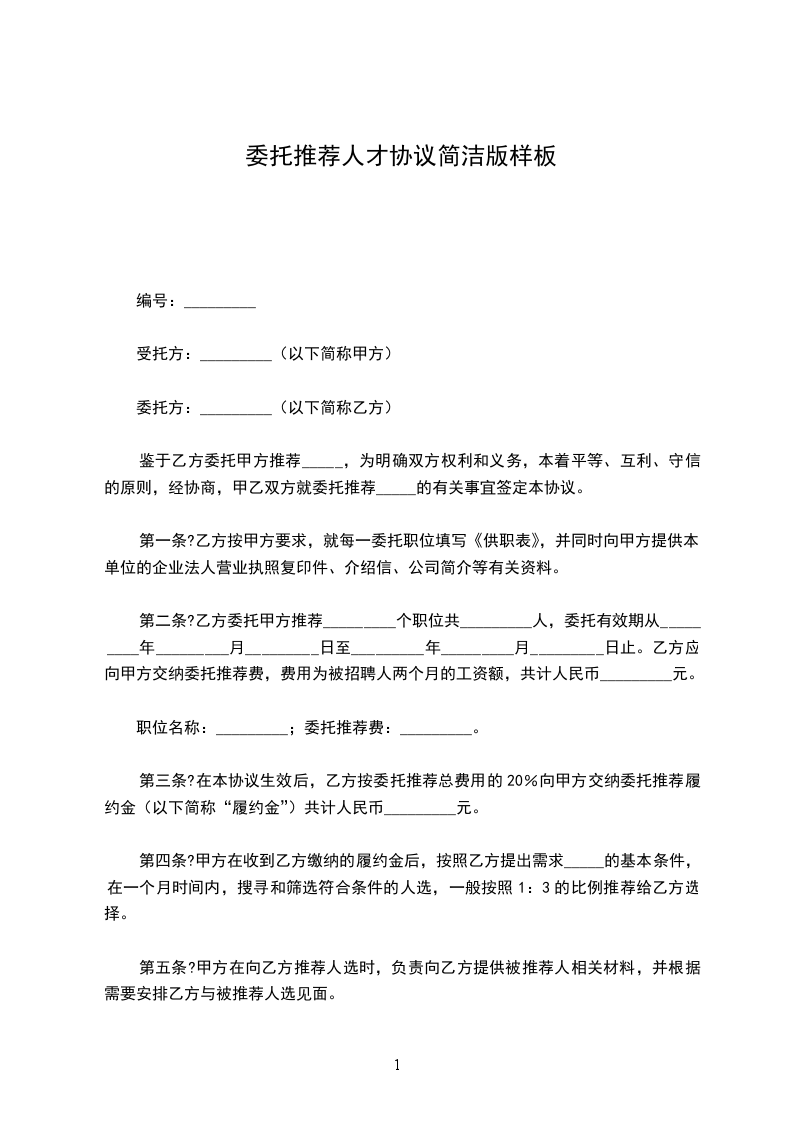 鉴于乙方委托甲方推荐_____,为明确双方权利和义务,本着平等、互利、守信的原则,经协商,甲乙双方就委托推荐_____的有关事宜签定本协议。