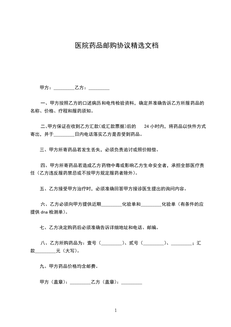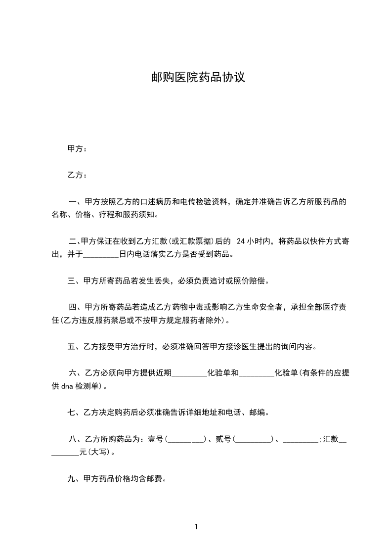 二、甲方保证在收到乙方汇款(或汇款票据)后的24小时内,将药品以快件方式寄出,并于_________日内电话落实乙方是否受到药品。