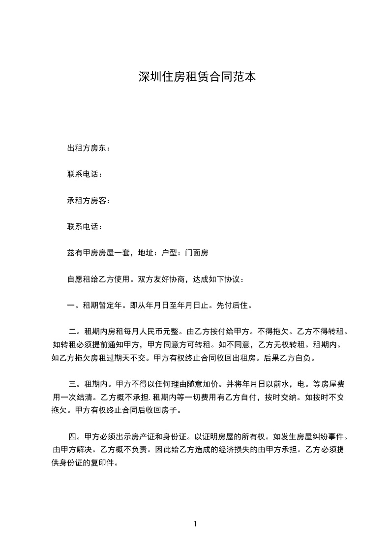 一。租期暂定年。即从_____年_____月_____日至_____年_____月_____日止。先付后住。