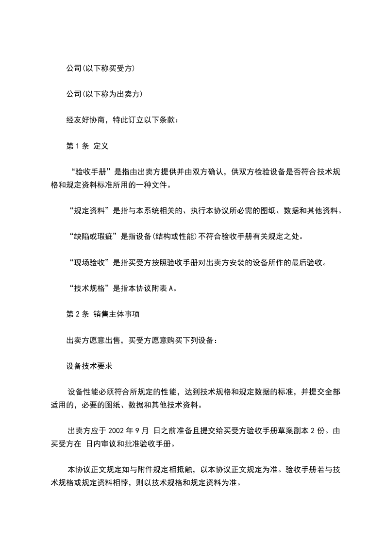 出卖方应于2002年9月 日之前准备且提交给买受方验收手册草案副本2份。由买受方在 日内审议和批准验收手册。