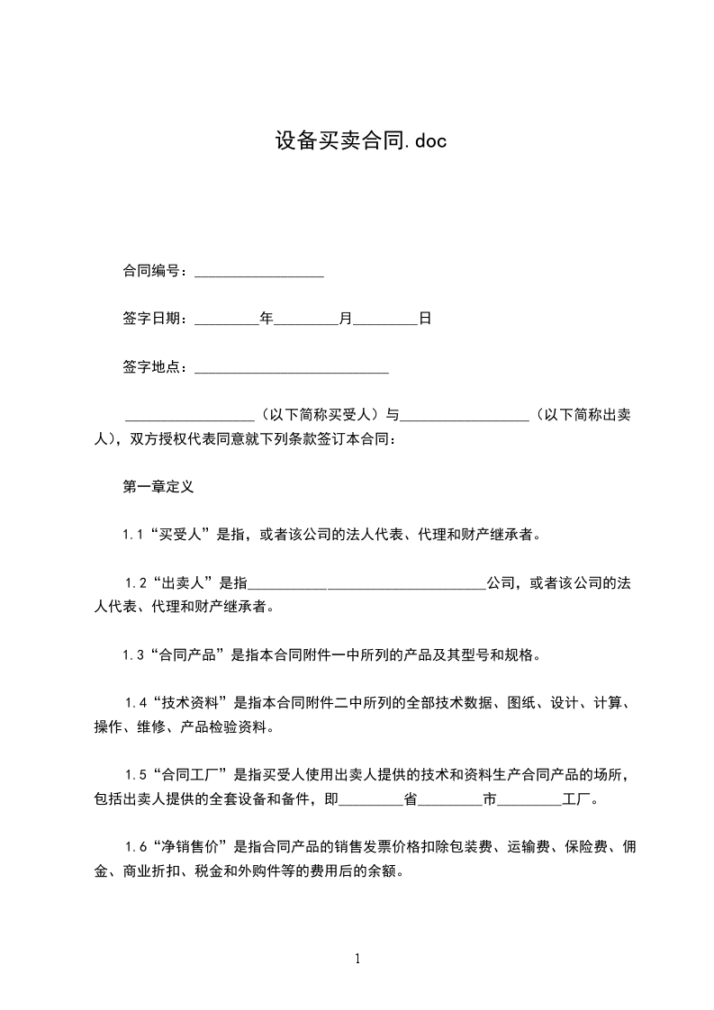 出卖方保证不会因设备材料和工艺方面的缺陷,以及设计不完善而导致设备达不到技术规格要求。