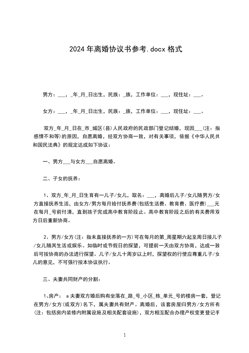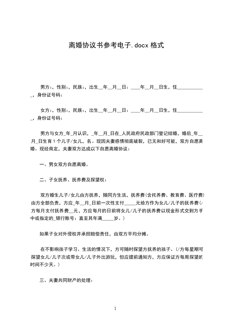 男方:XXX(写明姓名、性别、年龄、民族、籍贯、职业或者工作单位和职务、住址、联系电话)