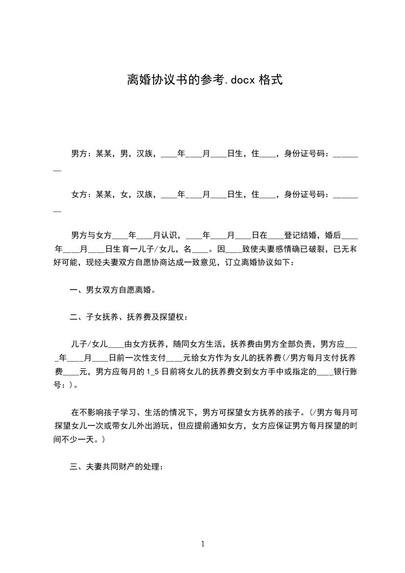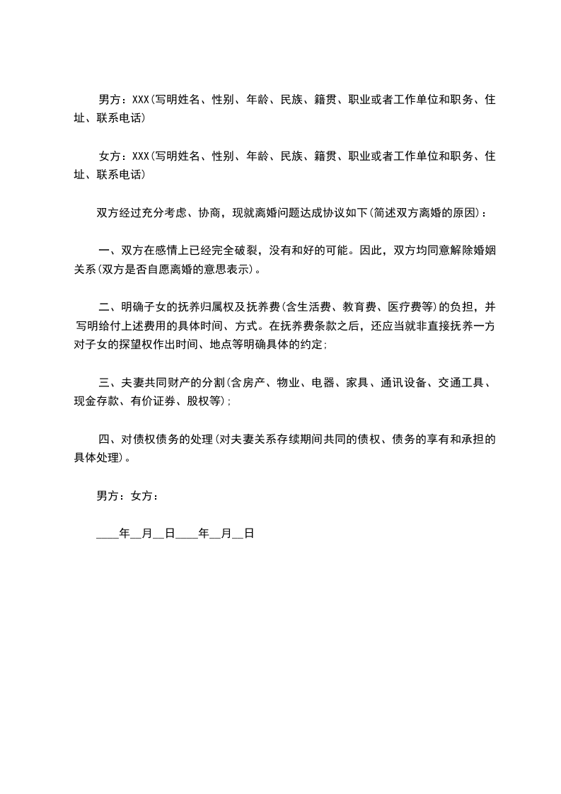 双方经过充分考虑、协商,现就离婚问题达成协议如下(简述双方离婚的原因):