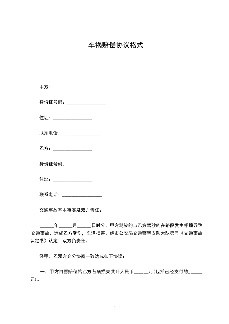 乙方:_________性别_________民族__________________年_________月出生,住址_________身份证号码_________联系电话:_________