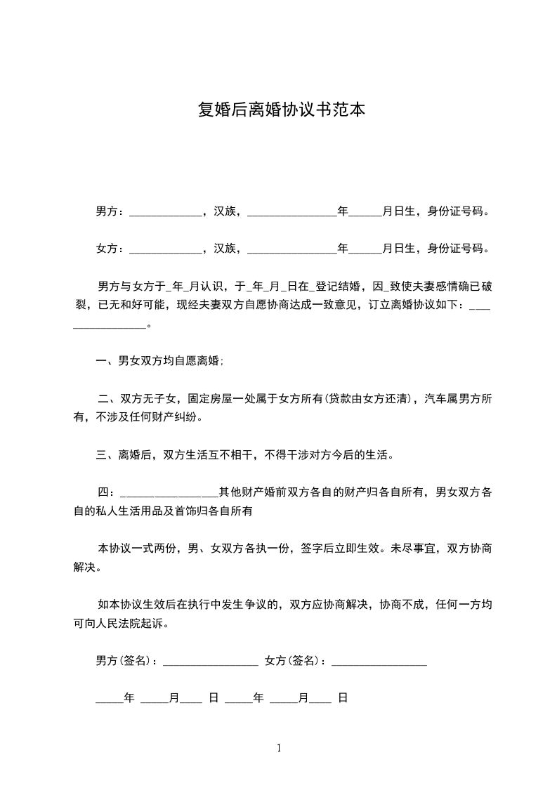 男方:_________________(签字)女方:_________________(签字)