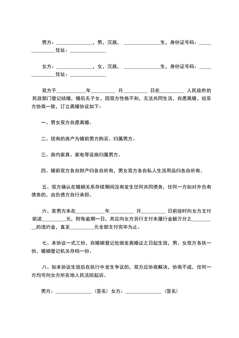 女方:______________,_____族,_____年_____月_____日生,住址_____,身份证号