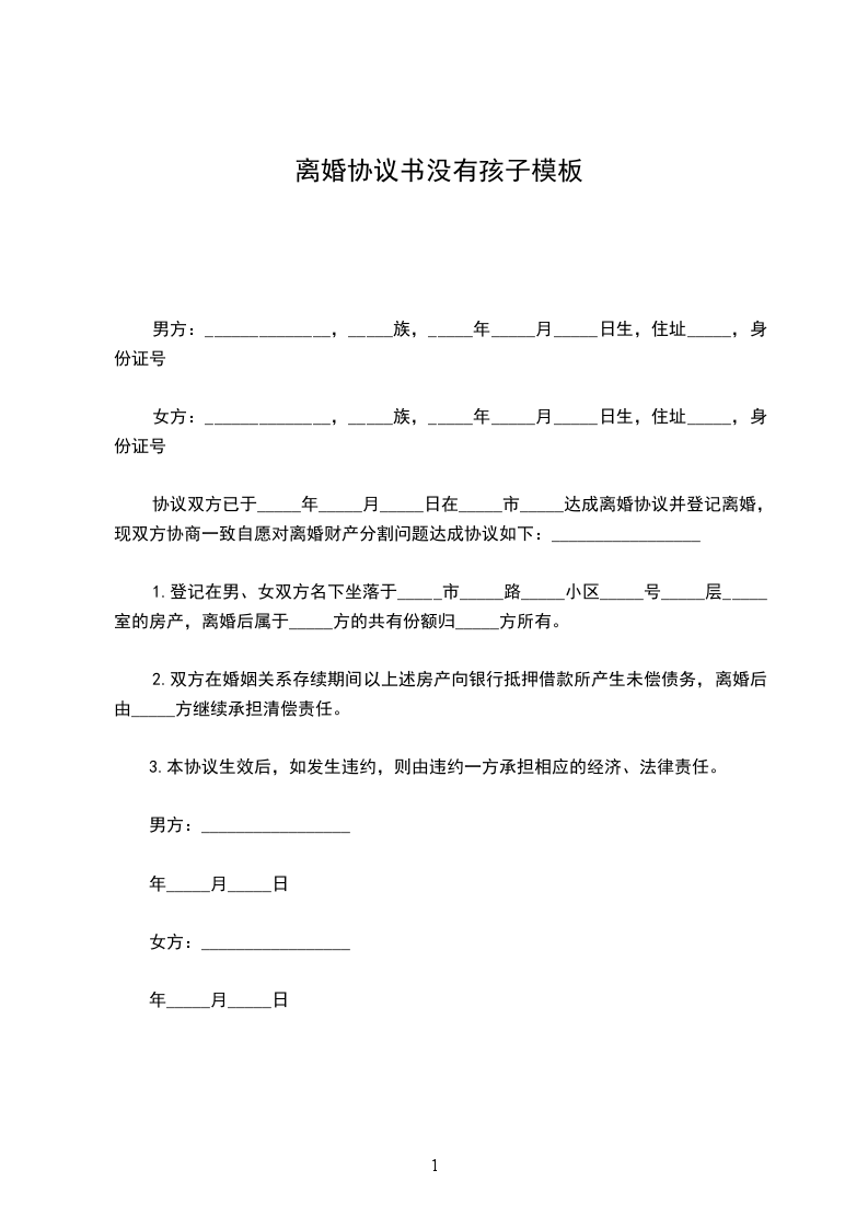 1.登记在男、女双方名下坐落于_____市_____路_____小区_____号_____层_____室的房产,离婚后属于_____方的共有份额归_____方所有。