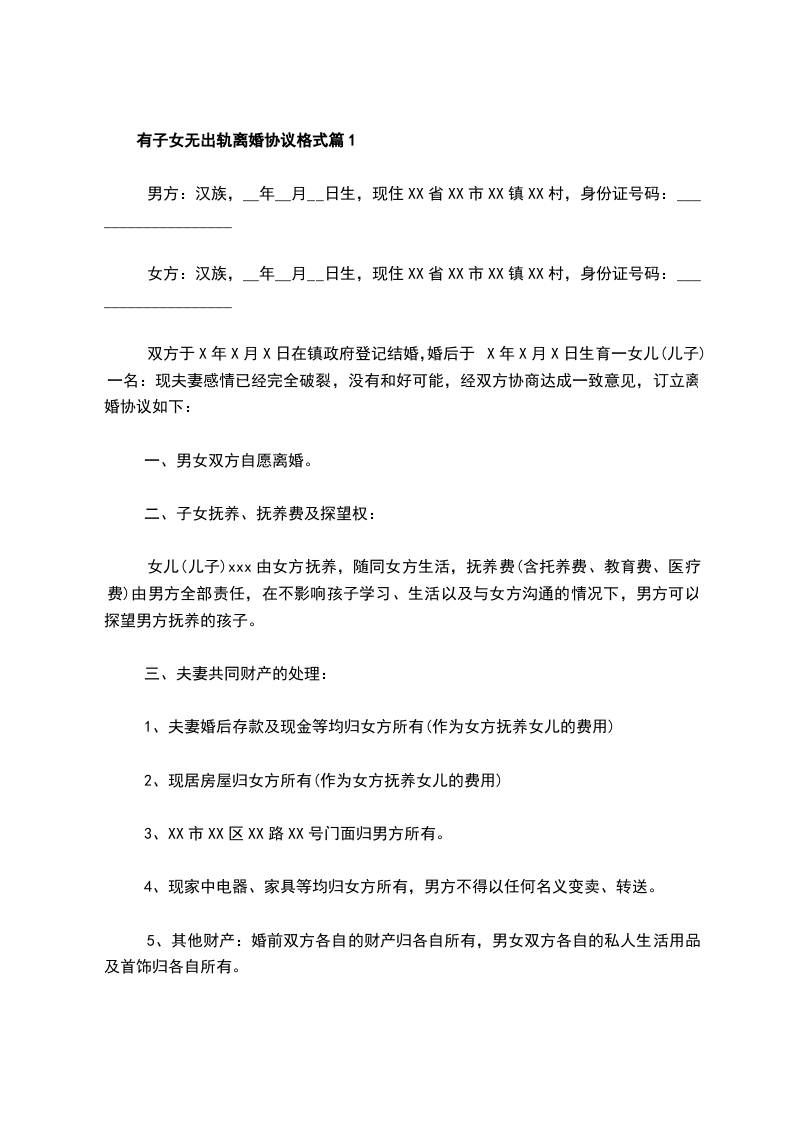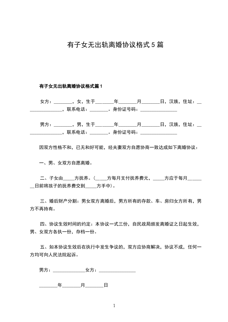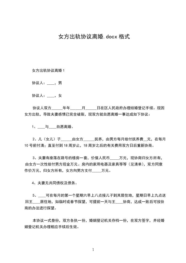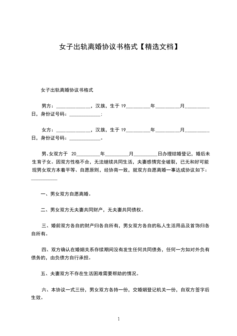 女方:______________,汉族,生于19__________年__________月__________日,身份证号码:_____________。