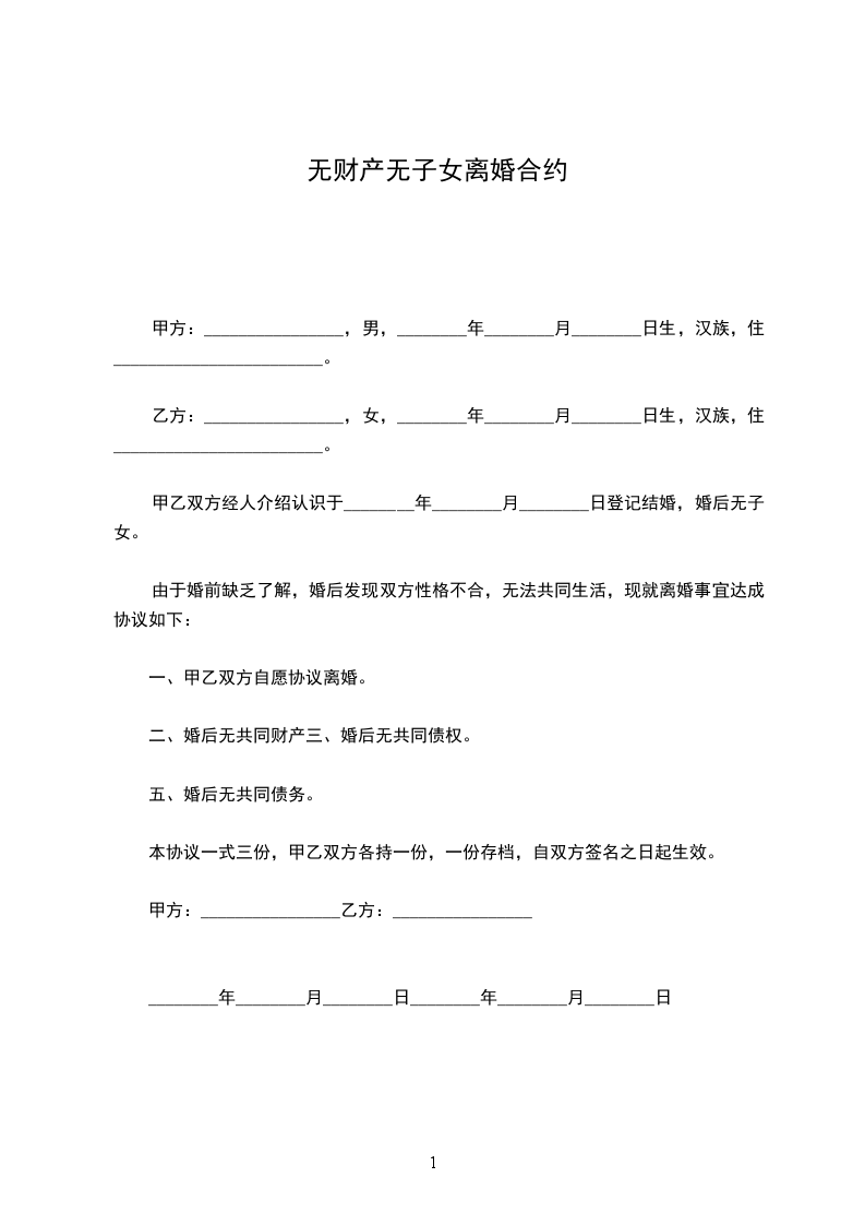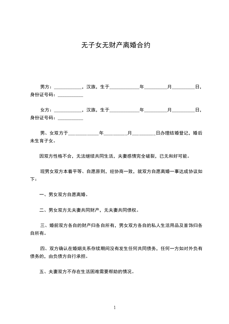 ③双方无共同财产。