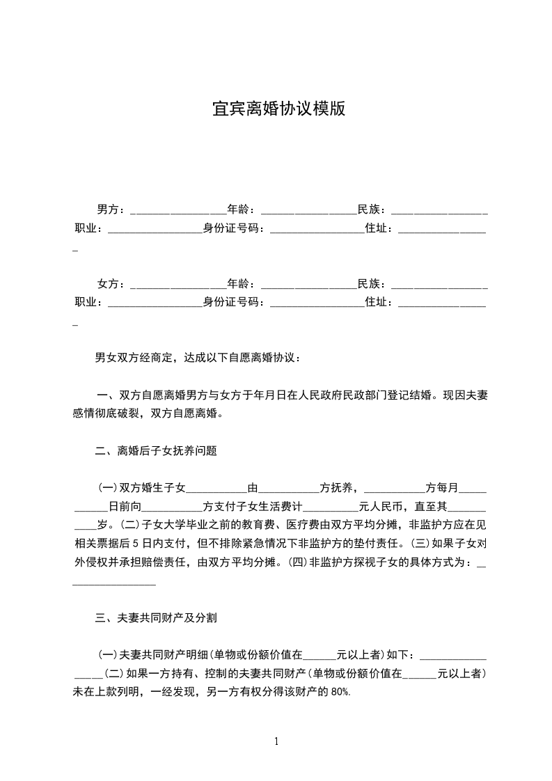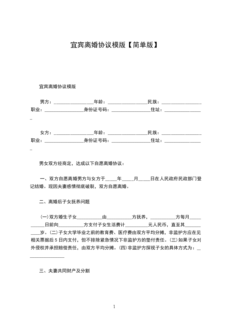 女方:_________________年龄:_________________民族:_________________职业:_________________身份证号码:_________________住址:_________________
