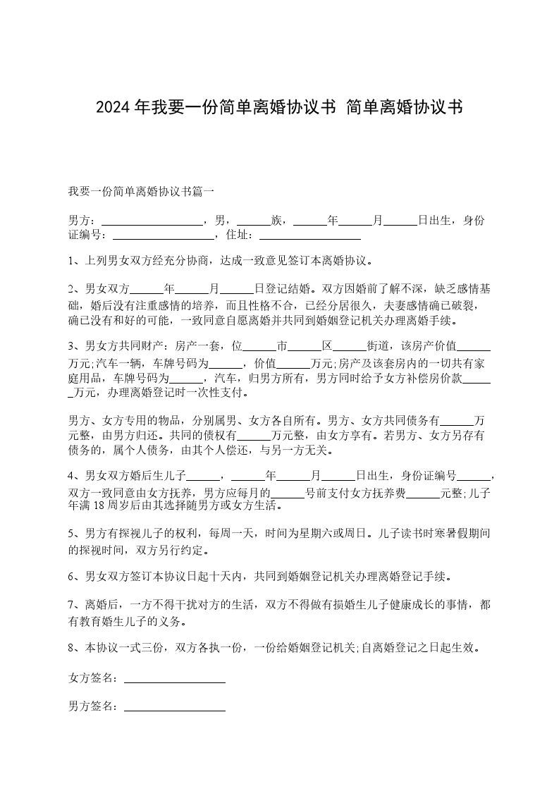 男、女双方于 ______年_______月_______日 在办理结婚登记手续。婚后感情一般,因双方性格不合,夫妻感情已完全破裂,没有和好可能,无法共同生活。现双方就自愿离婚一事达成如下协议:_________________