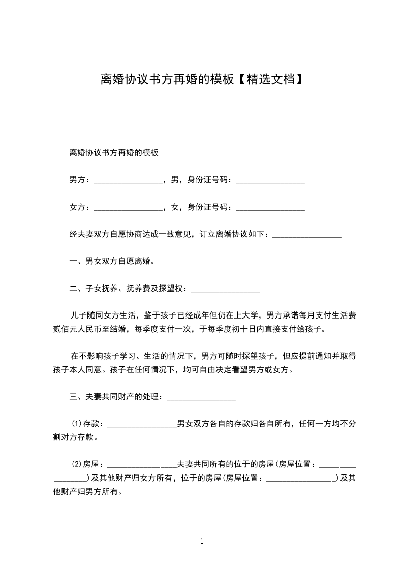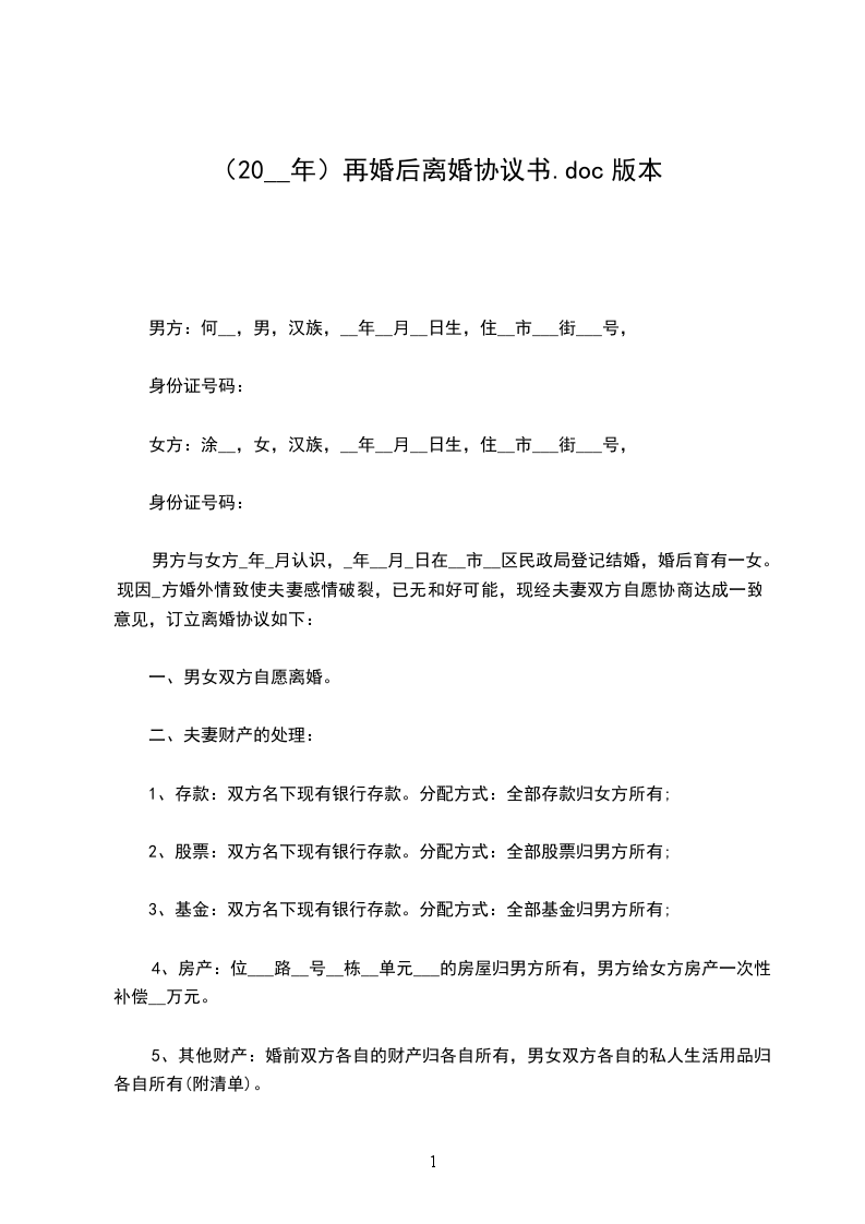 女方:_________________,女,汉族,__________年_____月_____日生,住________________,身份证号码:_____________