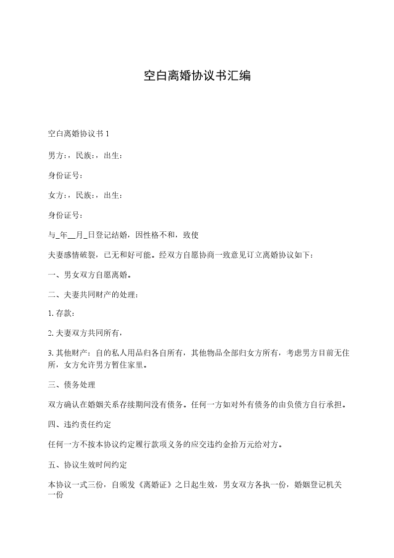 男女双方****年相恋,****年领取结婚证,由于双方性格不合,观点难以一致,导致感情彻底破裂,双方同意解除婚姻关系,并签订如下协议:_________________