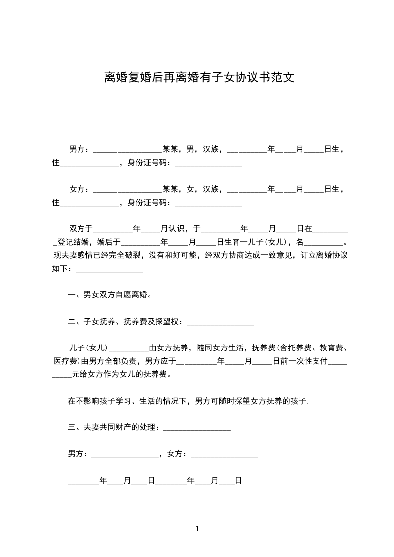 女方:_________________某某,女,汉族,__________年_____月_____日生,住_______________,身份证号码:_________________