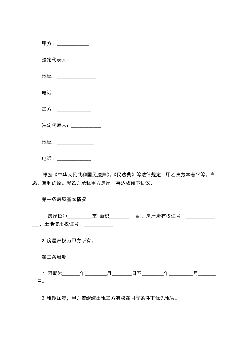 根据《中华人民共和国民法典》、《民法典》等法律规定,甲乙双方本着平等、自愿、互利的原则就乙方承租甲方房屋一事达成如下协议: