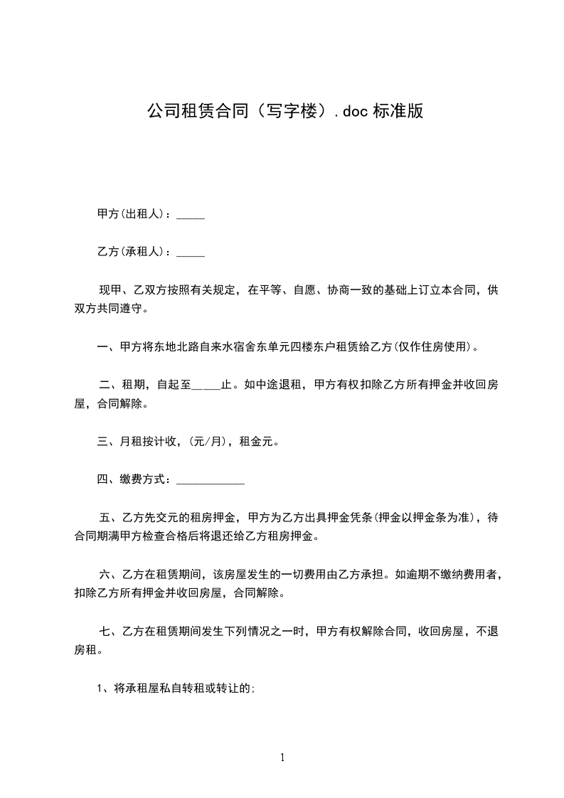 1.甲方保证房屋符合质量标准,能用于正常办公,否则乙方有权解除合同,甲方应赔偿乙方损失。