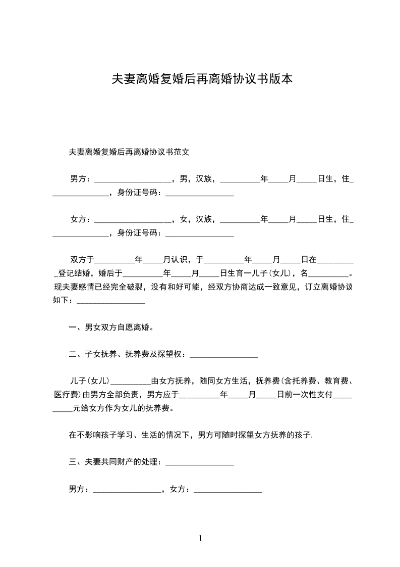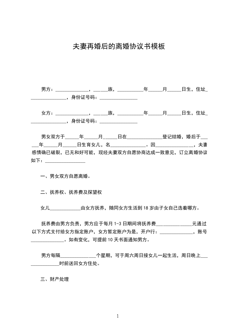 女方:_________________某某,女,汉族,__________年_____月_____日生,住_______________,身份证号码:_________________