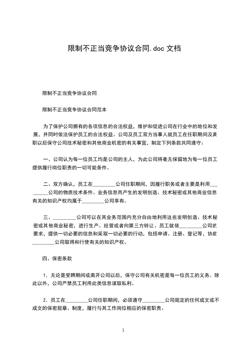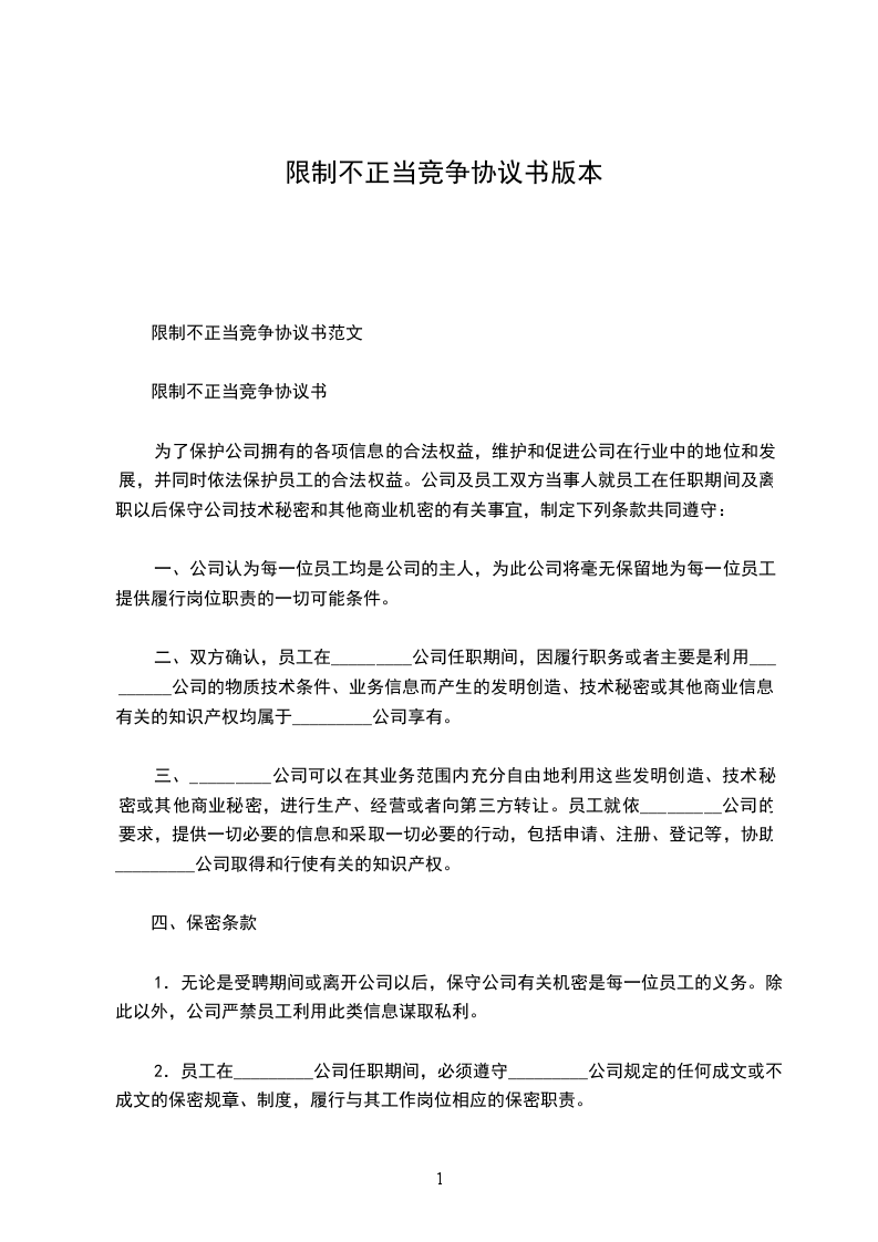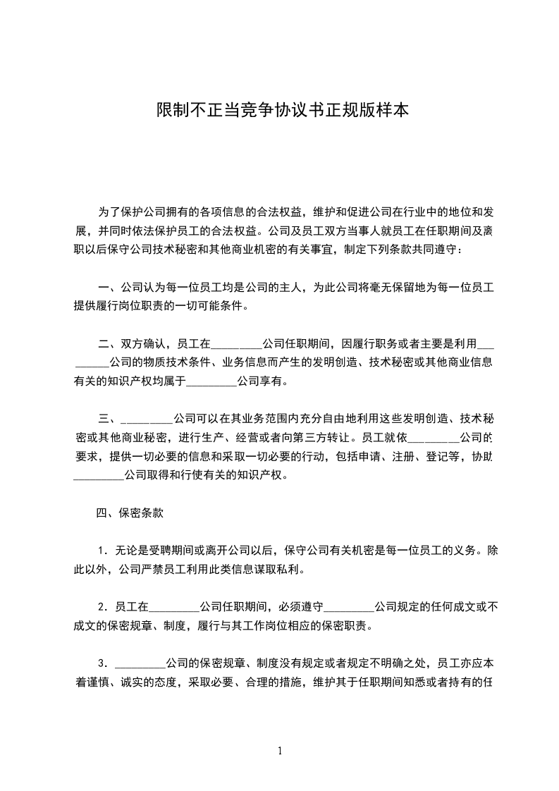 2.不论何种原因员工从_________公司离职,离职后2年内不得到与_________公司同行业或相关行业的单位就职(包括_____);