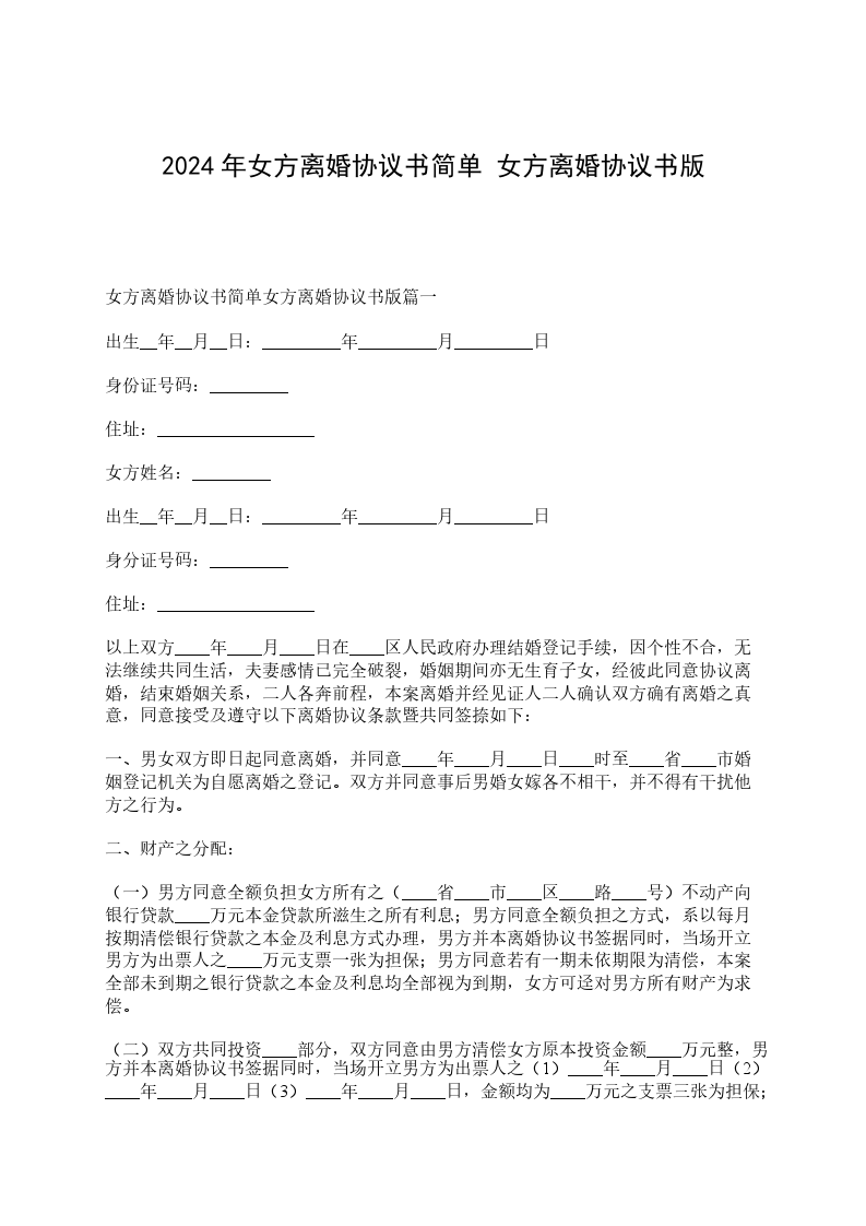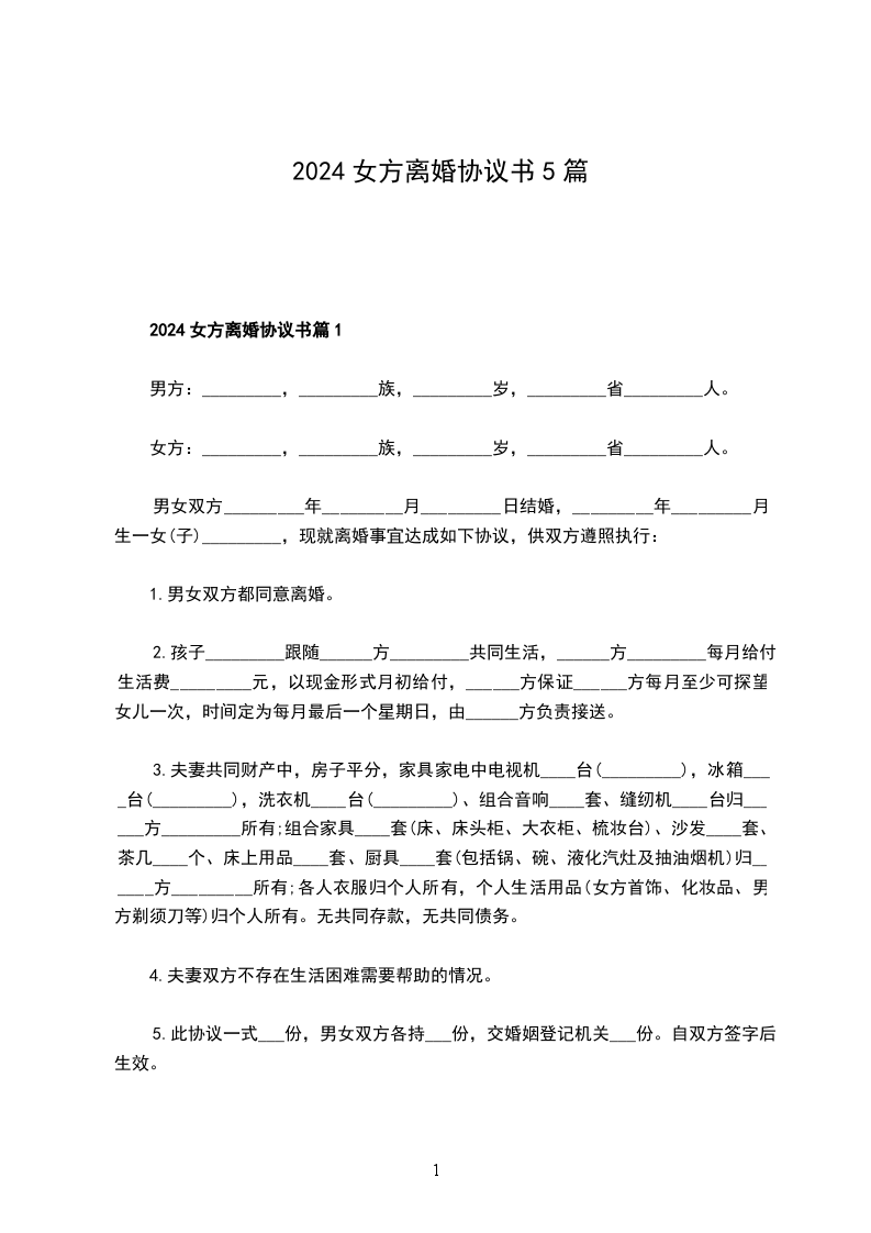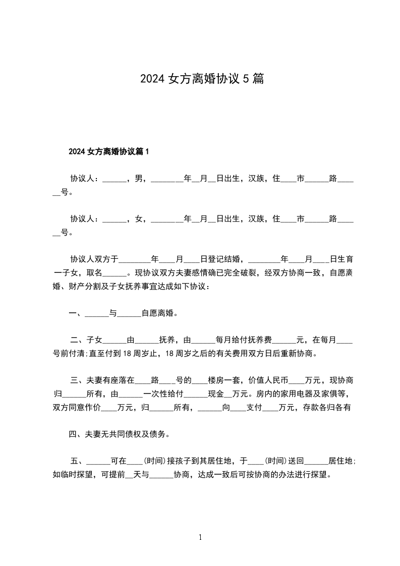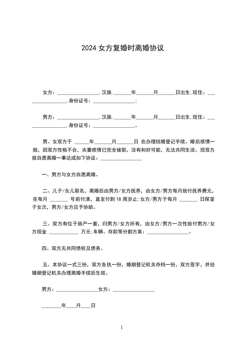 女方:_________________,汉族,_______年_______月_______日出生,现住:_________________,身份证号:_________________;