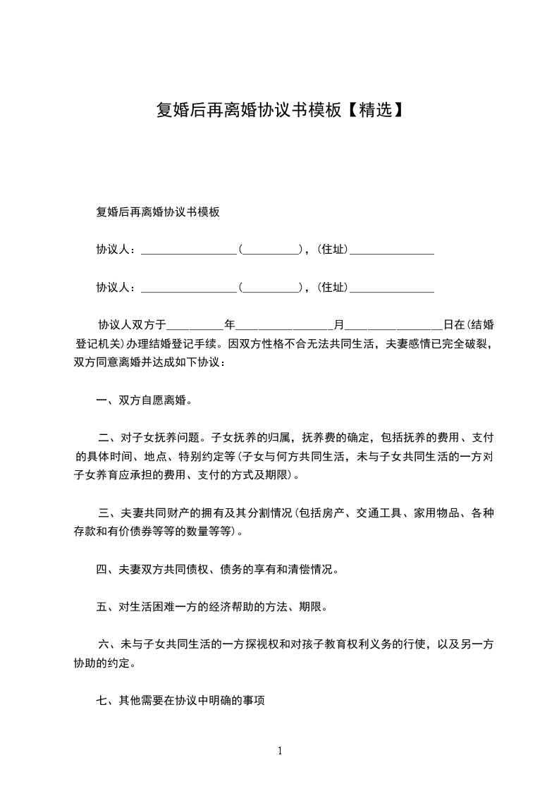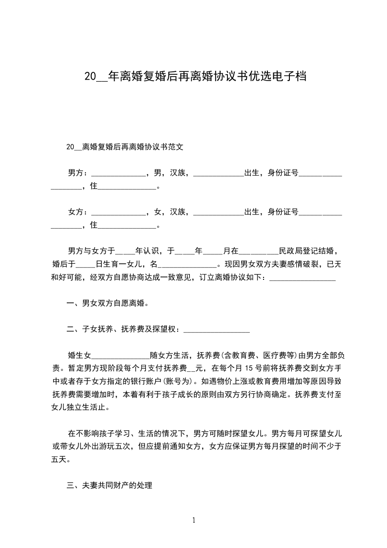 六、本协议书一式三份,男女双方各执一份,婚姻登记机关存档一份。