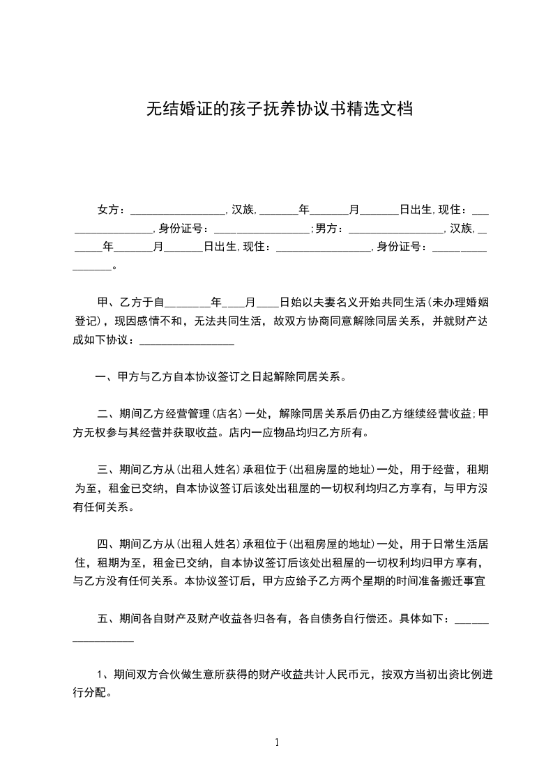 甲、乙方于自________年____月____日始以夫妻名义开始共同生活(未办理婚姻登记),现因感情不和,无法共同生活,故双方协商同意解除同居关系,并就财产达成如下协议:_________________