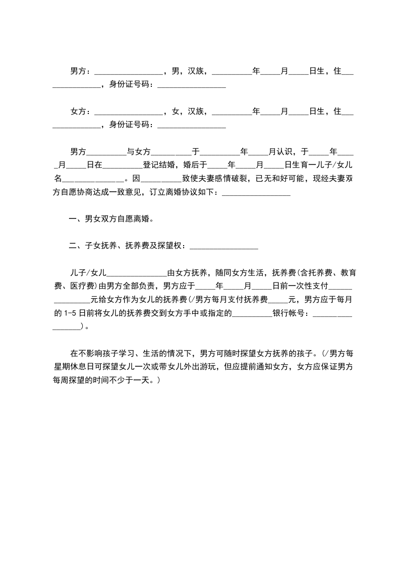 女方:_________________,女,汉族,__________年_____月_____日生,住_______________,身份证号码:_________________