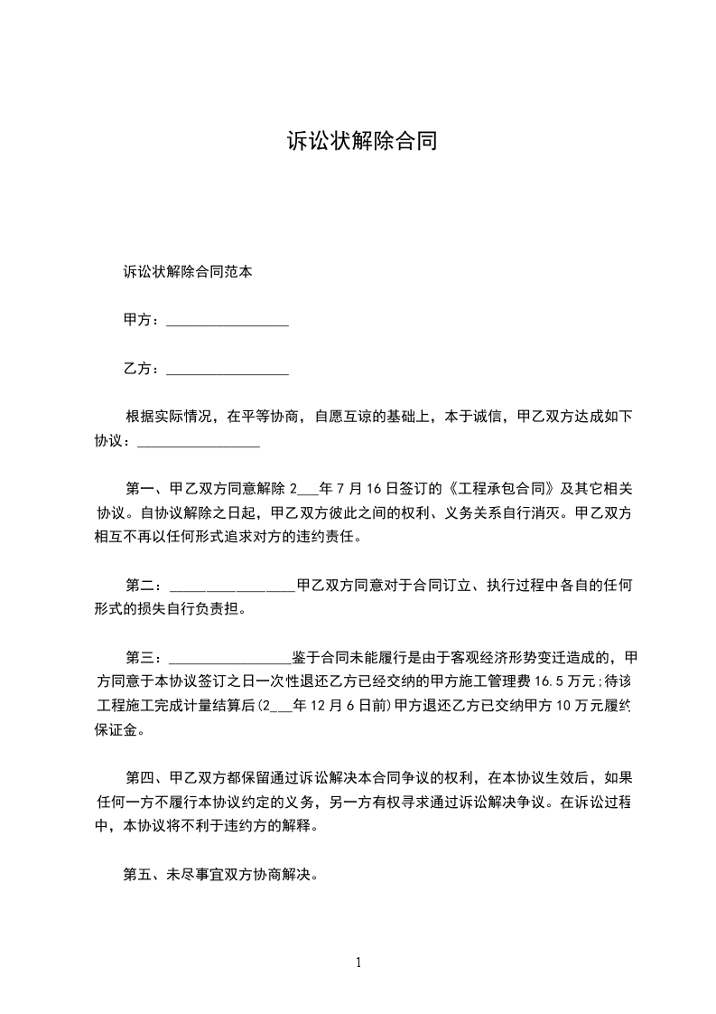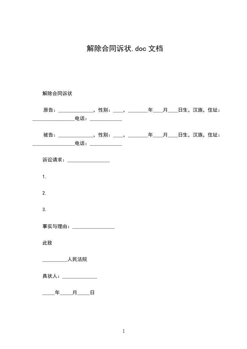 解除合同诉状