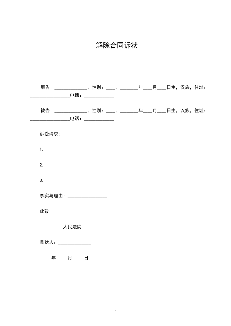 原告:______________,性别:____,________年____月____日生,汉族,住址:_________________电话:_____________