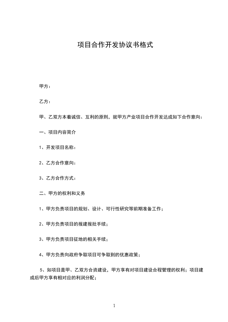 甲、乙双方本着诚信、互利的原则,就甲方产业项目合作开发达成如下合作意向:
