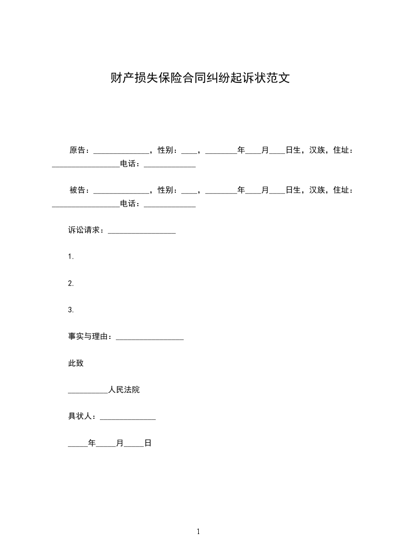 原告:______________,性别:____,________年____月____日生,汉族,住址:_________________电话:_____________