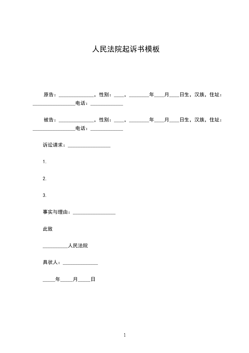 原告:______________,性别:____,________年____月____日生,汉族,住址:_________________电话:_____________