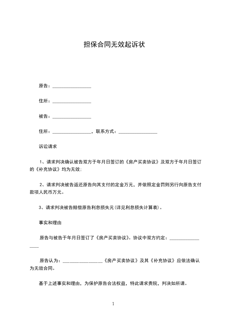 1、请求判决确认被告双方于______年____月____日签订的《房产买卖协议》及双方于______年____月____日签订的《补充协议》均为无效;