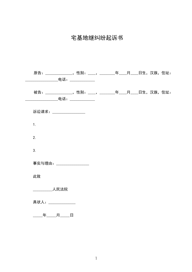 原告:______________,性别:____,________年____月____日生,汉族,住址:_________________电话:_____________