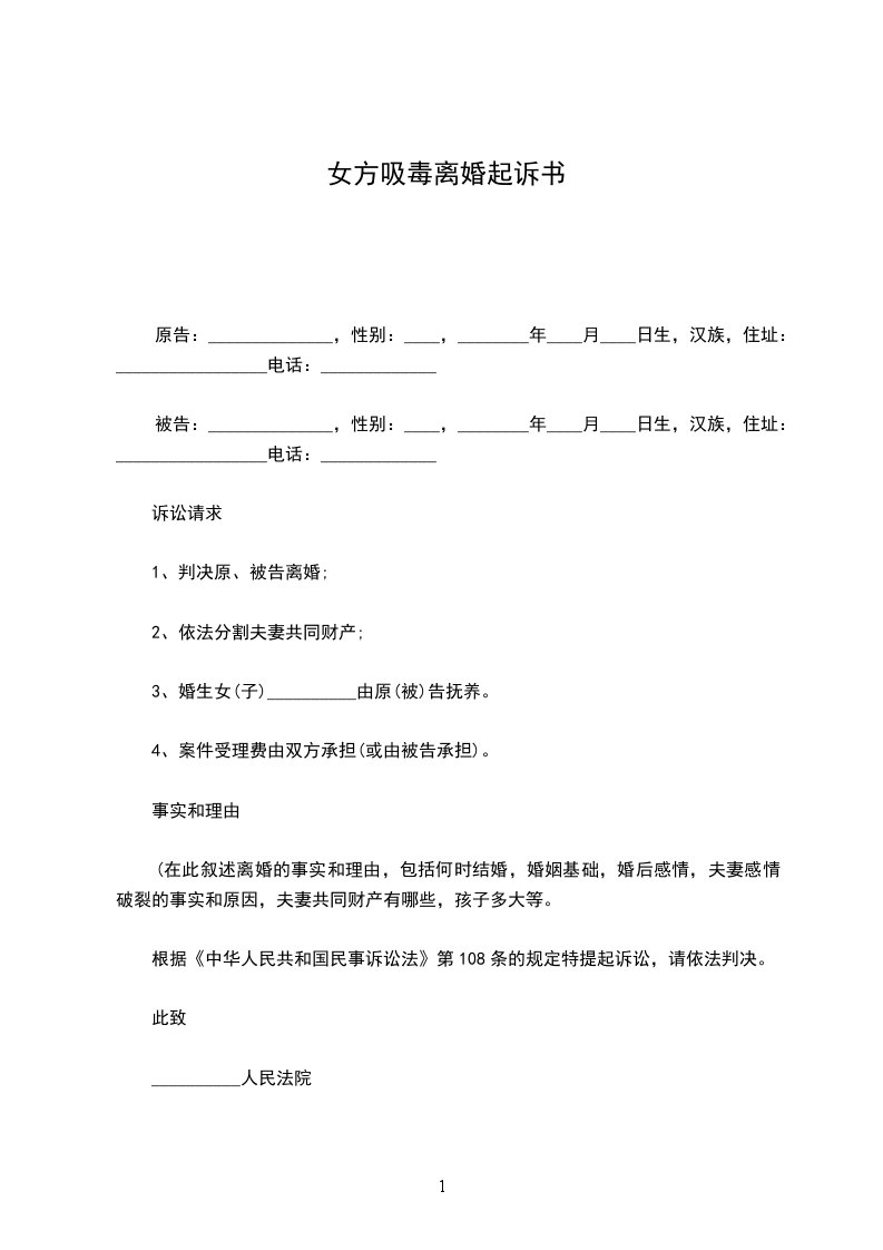 原告:______________,性别:____,________年____月____日生,汉族,住址:_________________电话:_____________