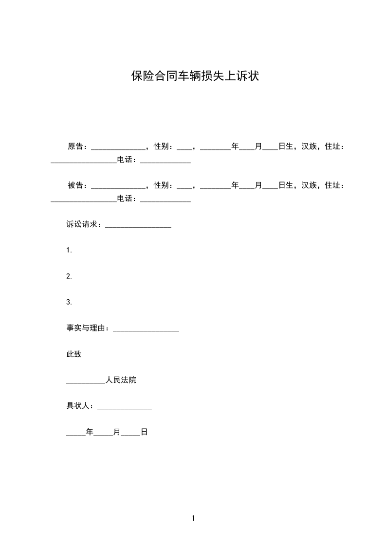 原告:______________,性别:____,________年____月____日生,汉族,住址:_________________电话:_____________