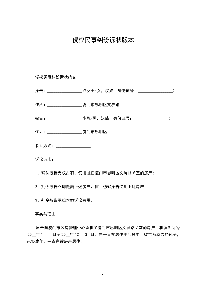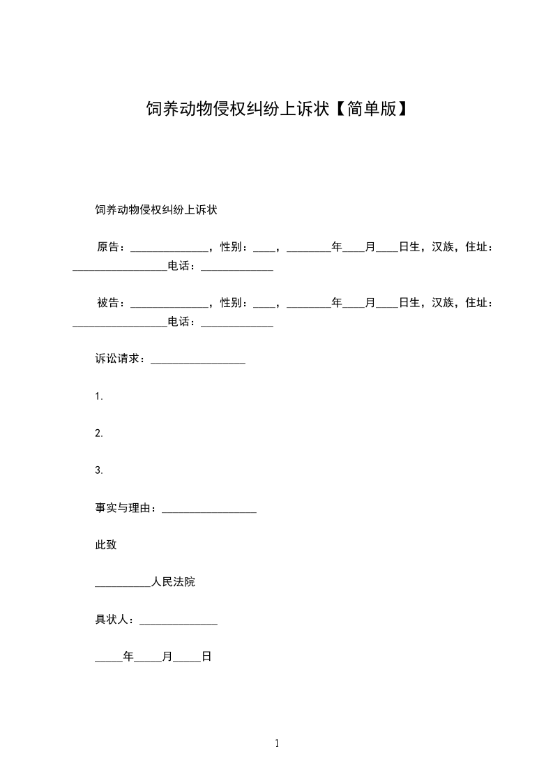 原告:______________,性别:____,________年____月____日生,汉族,住址:_________________电话:_____________